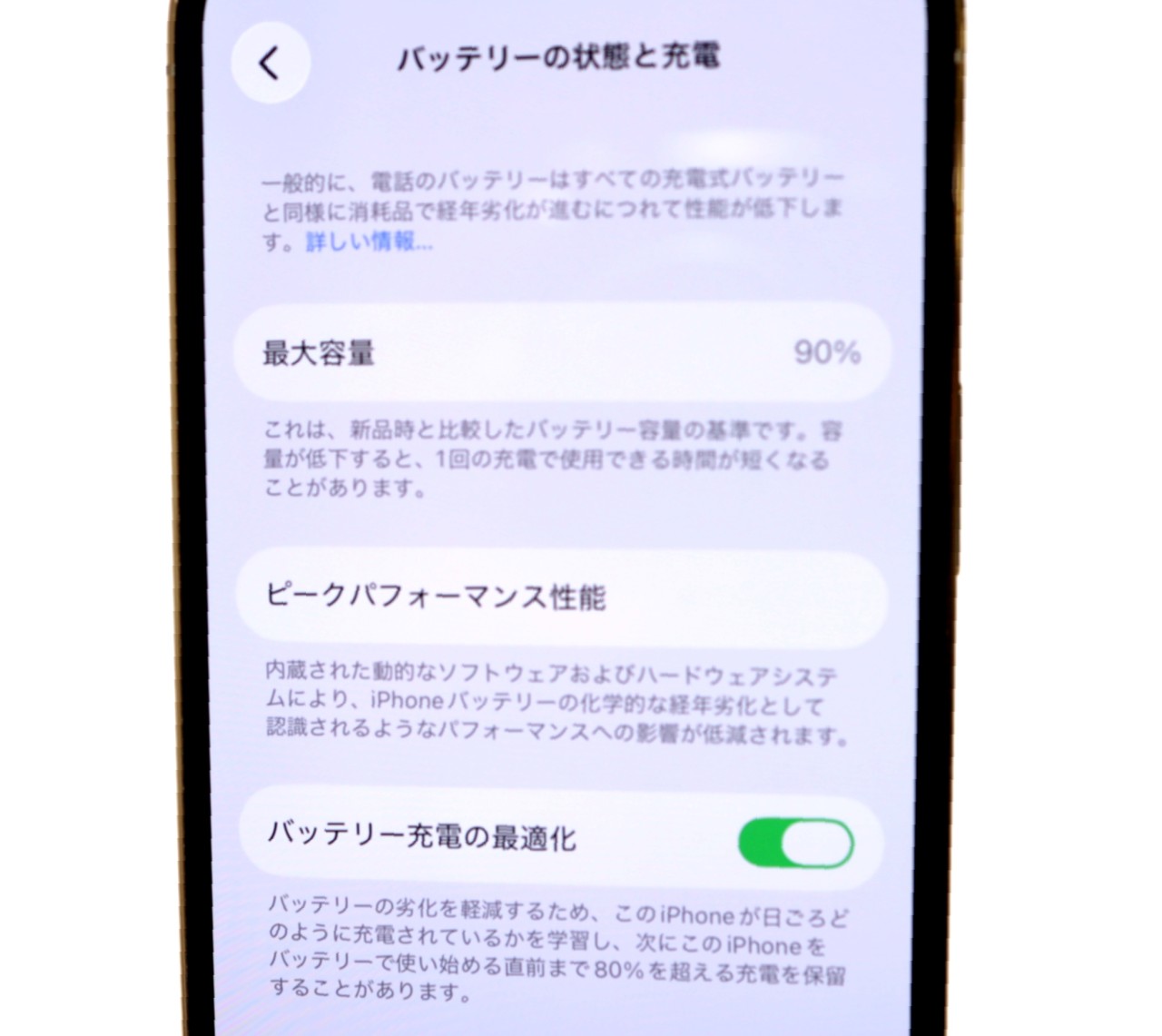 バッテリー最大容量=90%