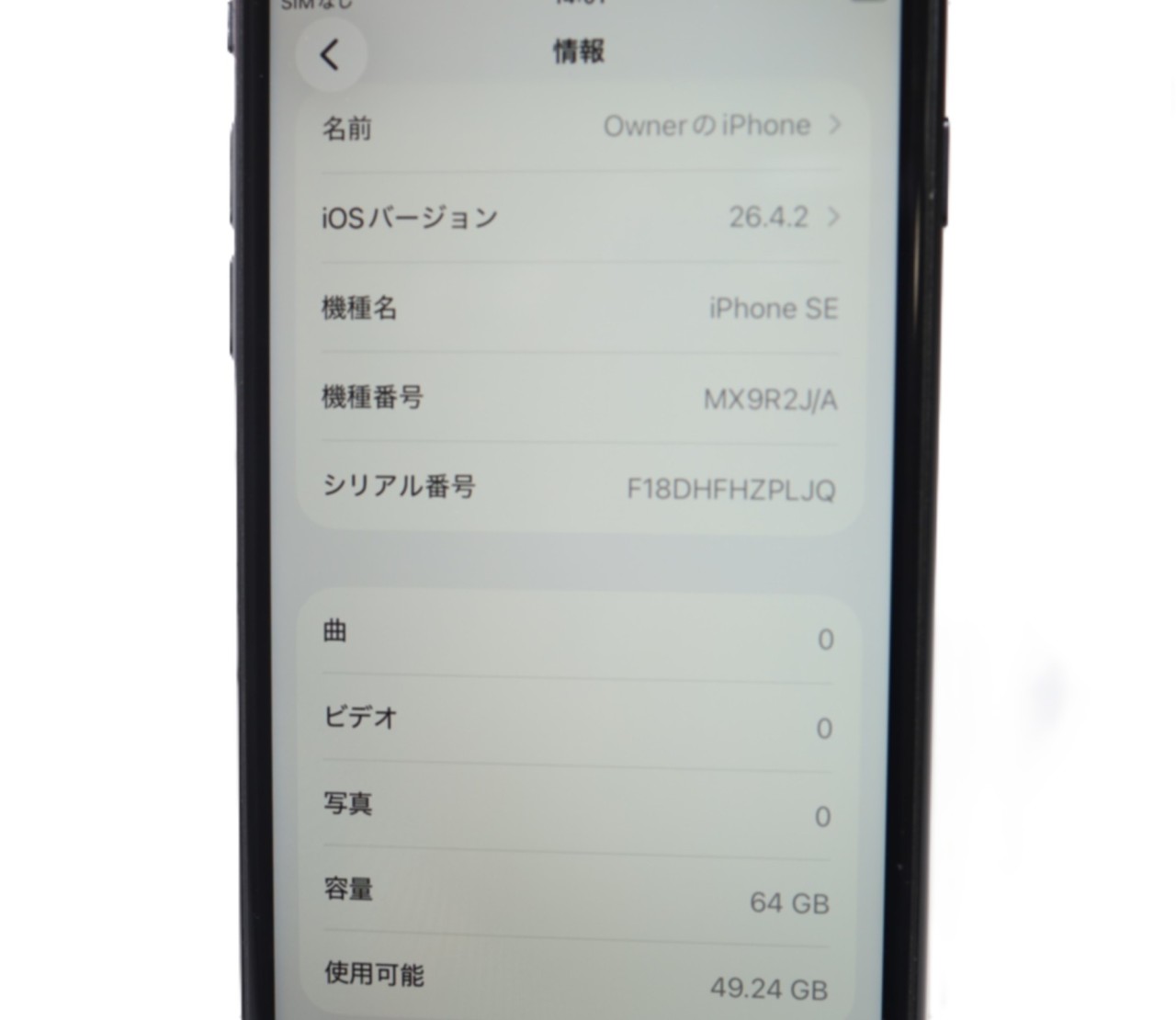 APPLE [USED]u060581 .iPhonsSE 2nd 64GB SIMフリー [ブラック] の 商品仕様1: