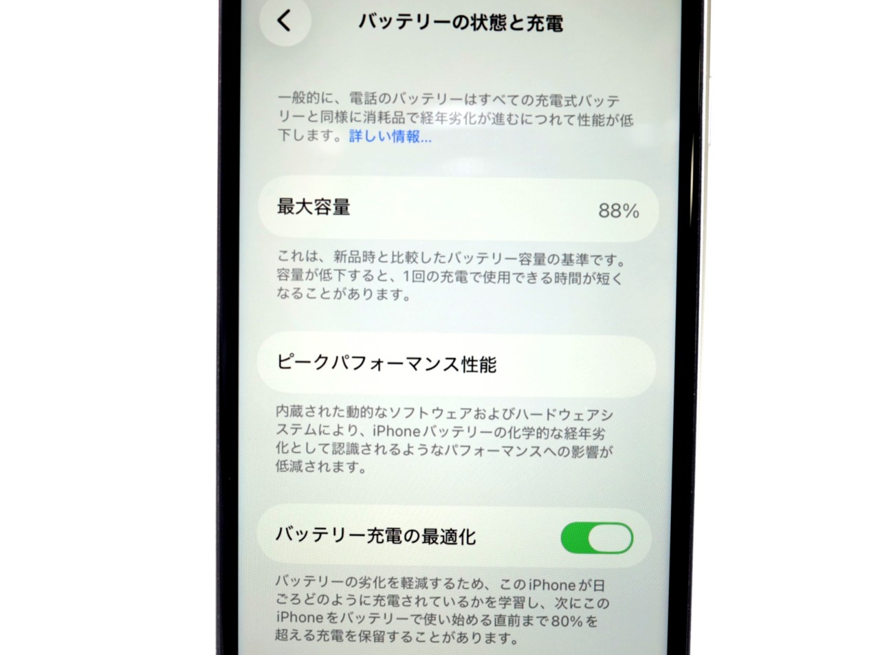 バッテリー最大容量=88%