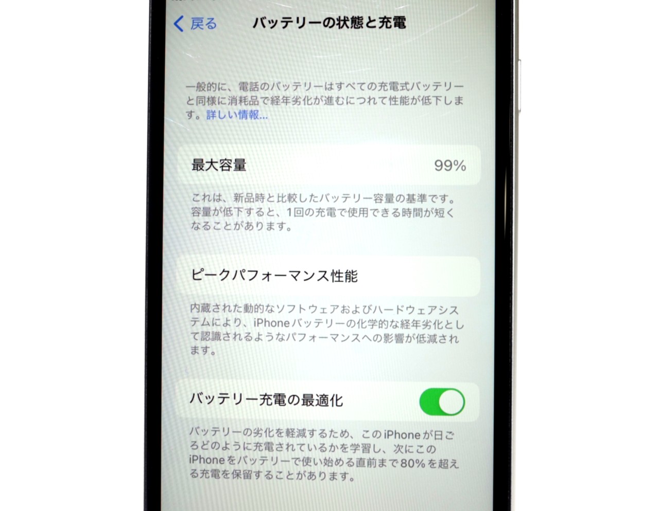 バッテリー最大容量=99%