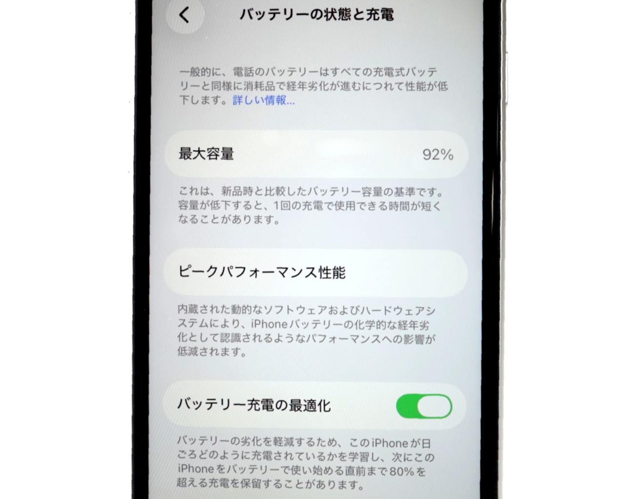 バッテリー最大容量=92%