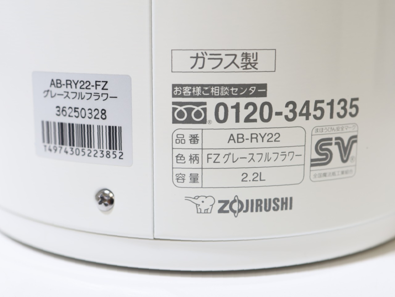 ZOJIRUSHI [USED]u060656 AB-RY22-FZ の 商品仕様1: