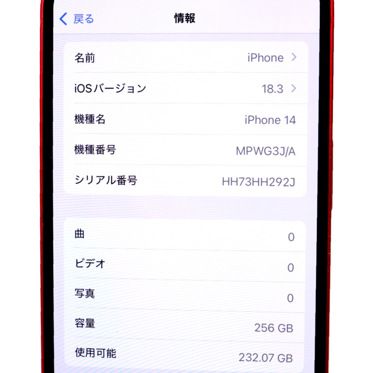 APPLE [USED]u060660 iPhone14 (PRODUCT)RED 256GB SIMフリー [レッド] の 商品仕様1: