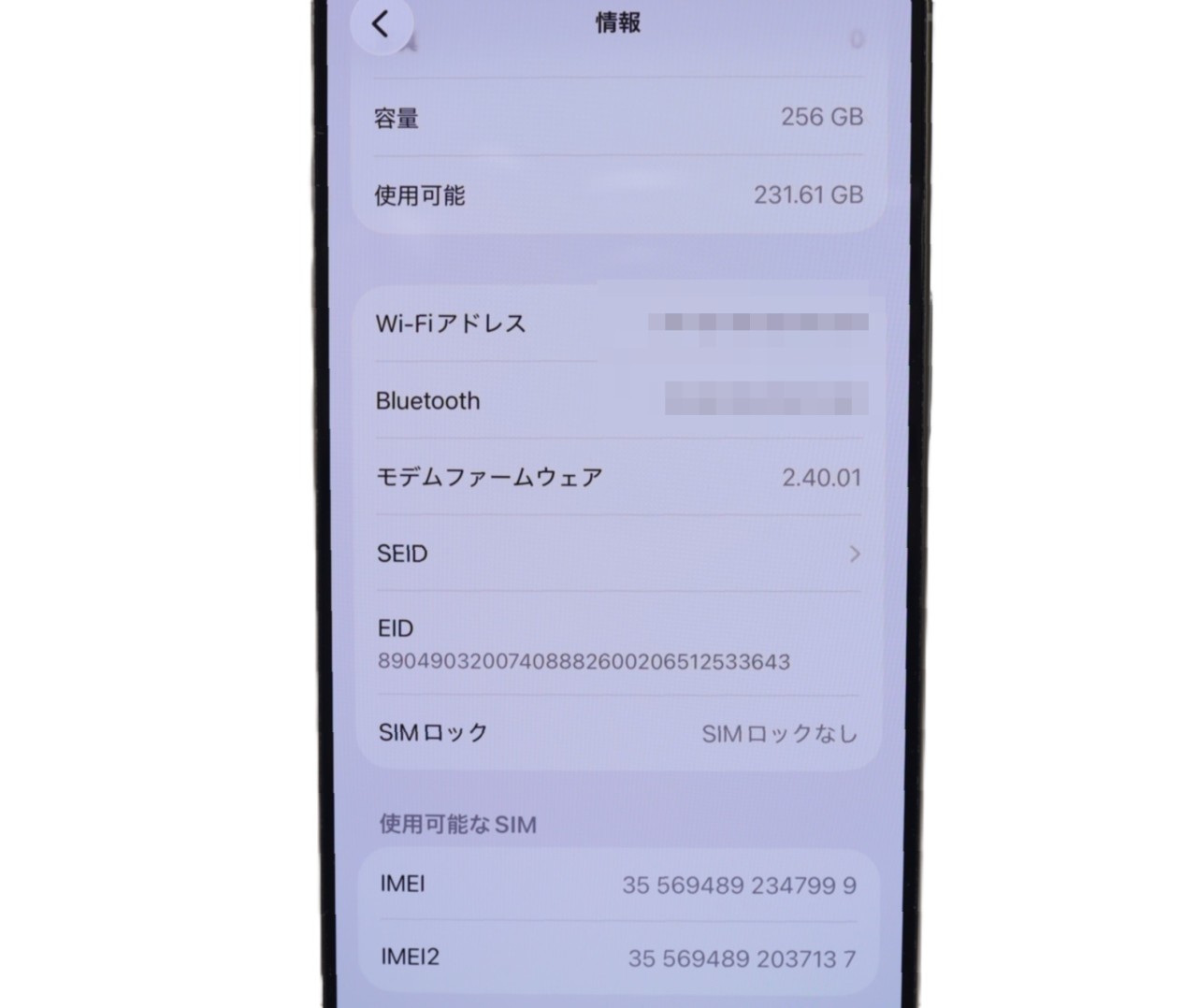 内蔵メモリ : 256GB