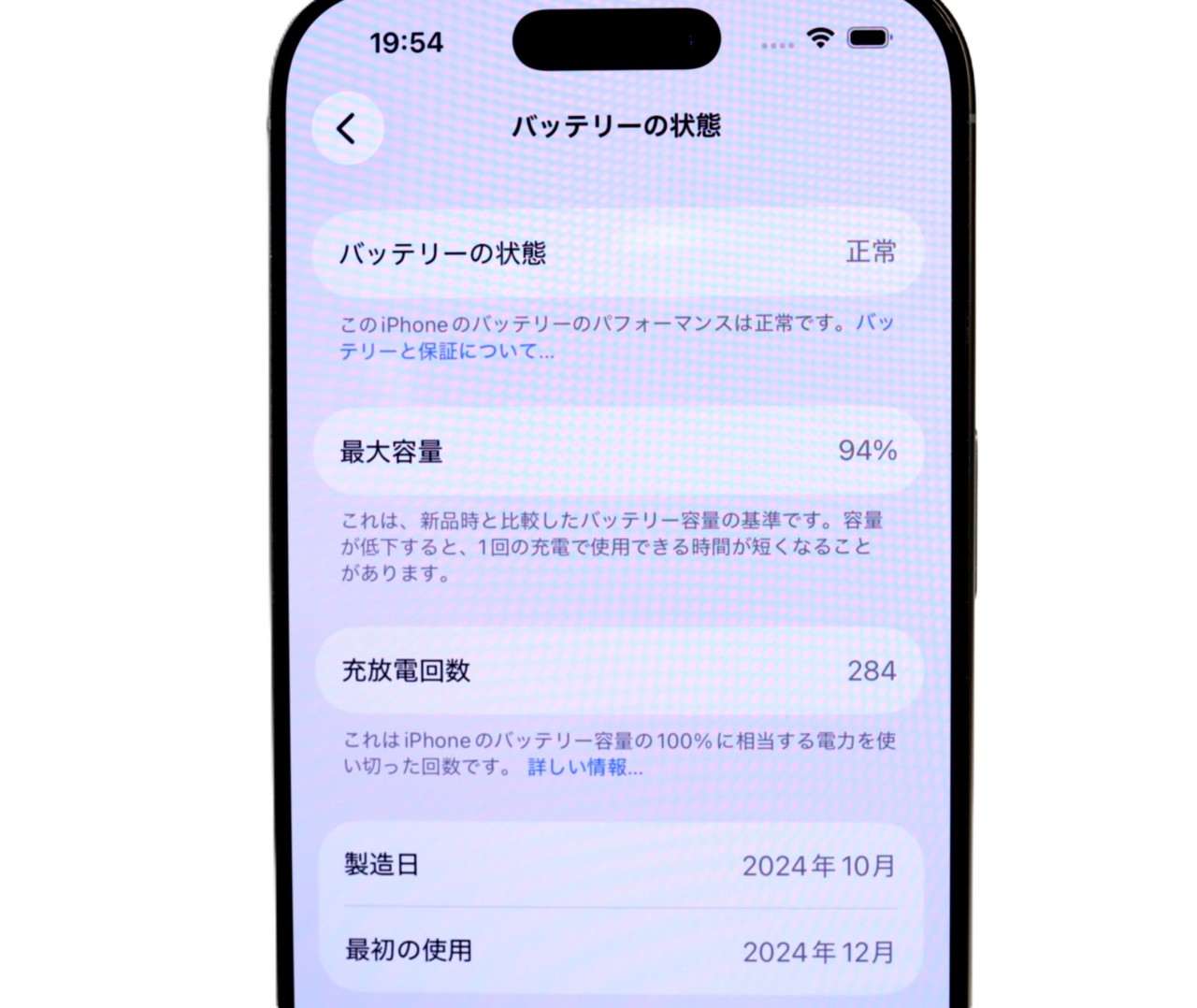 バッテリー最大容量=94%