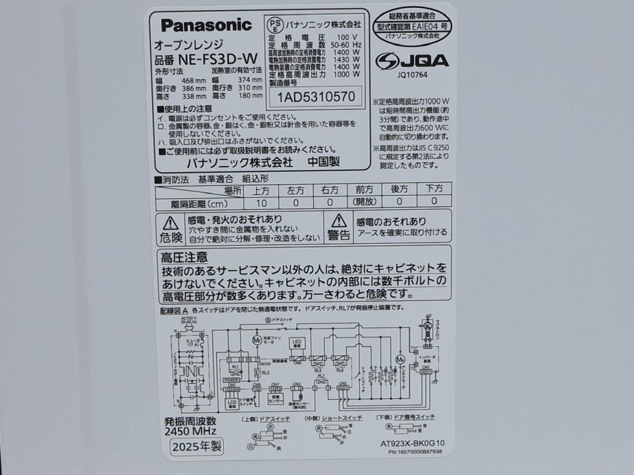 Panasonic [USED]u060671 NE-FS3D-W の 商品仕様1: