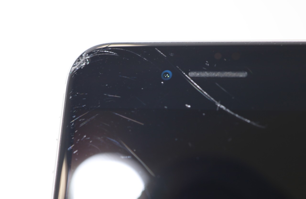 画面左上角に破損があります。画面上部に割れがあります。