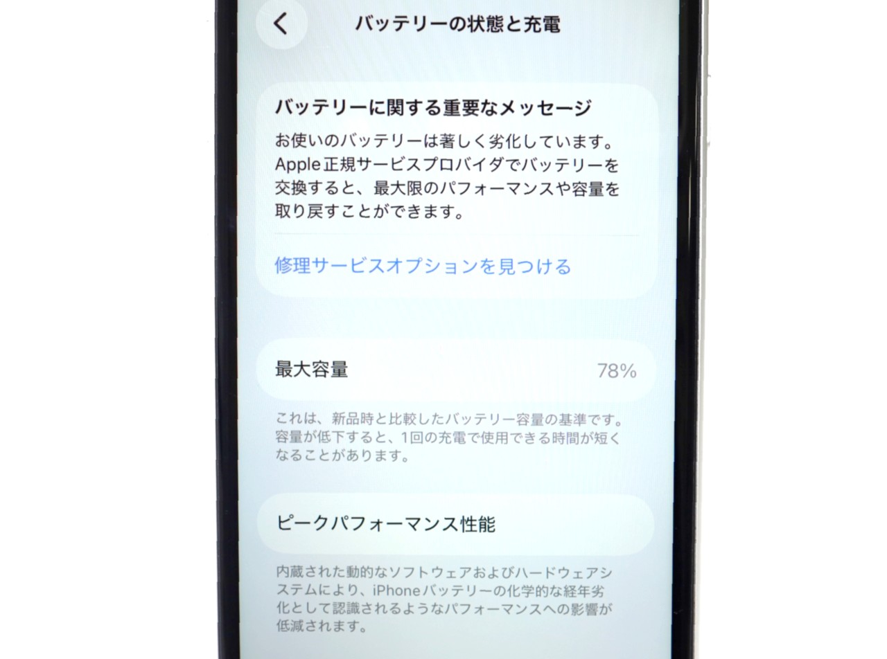 バッテリー最大容量=78% IMEIチェック=au【◯】