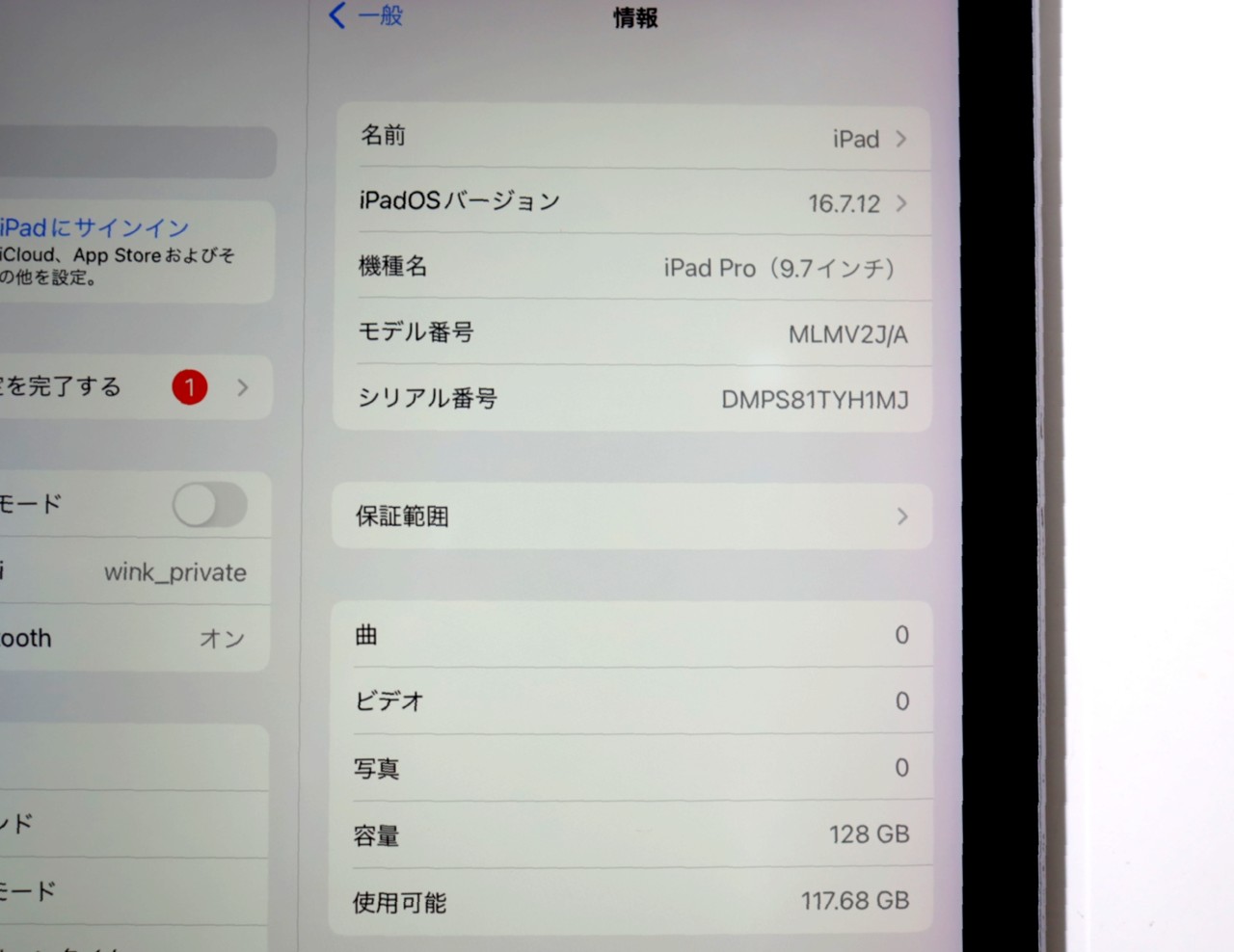 APPLE [中古]iPad iPad Pro 9.7インチ Wi-Fiモデル 128GB MLMV2J/A [スペースグレイ]
