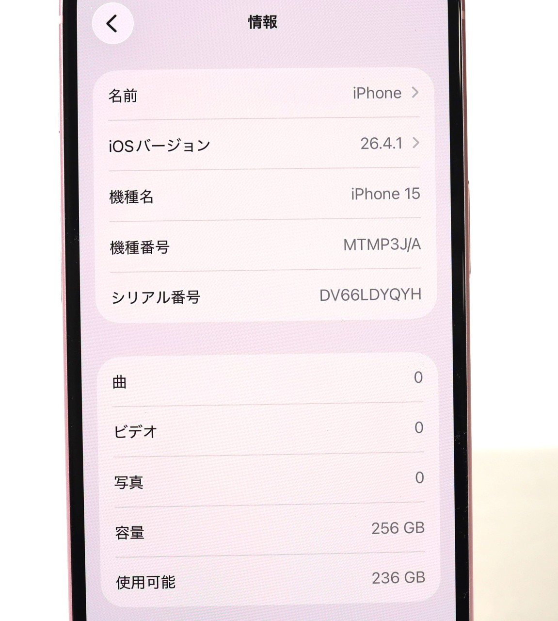APPLE [USED]u060723 iPhone15 256GB SIMフリー [ピンク] の 商品仕様1: