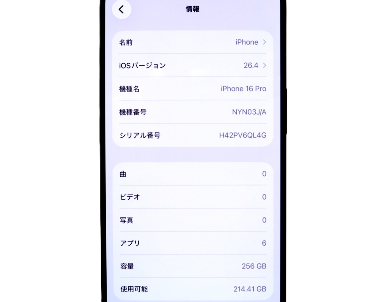 APPLE [USED]u060733 iPhone16 Pro 256GB SIMフリー [ブラックチタニウム] の 商品仕様1: