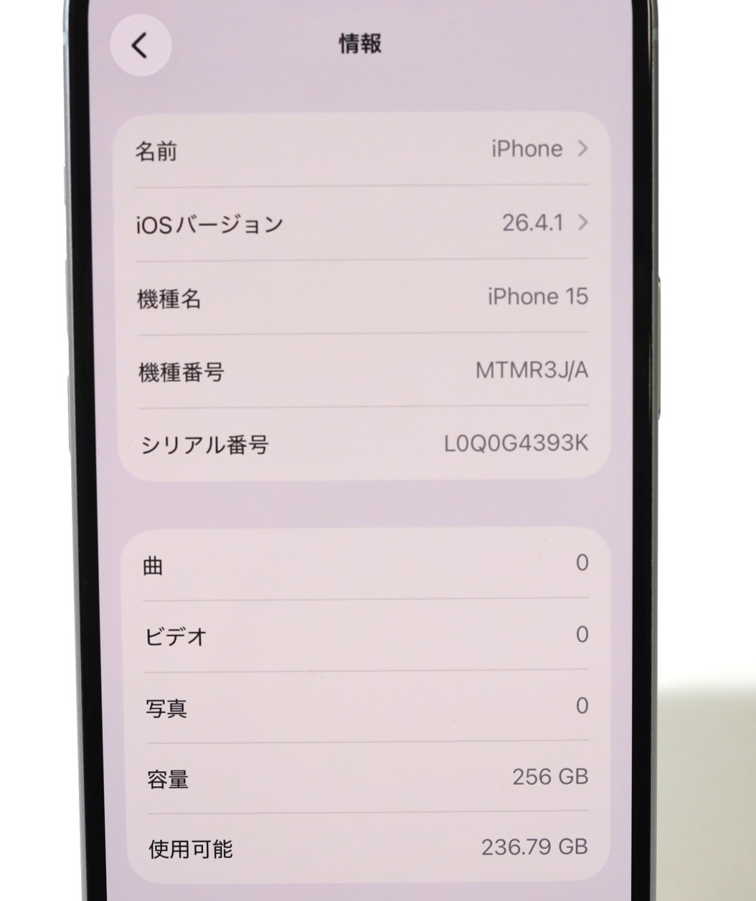 APPLE [USED]u060745 iPhone15 256GB SIMフリー [ブルー] の 商品仕様1: