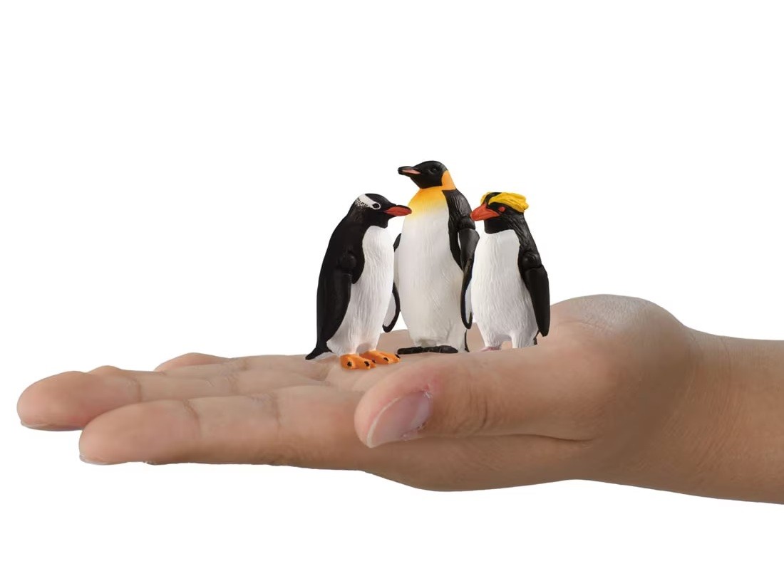 コウテイペンギン、イワトビペンギン、ジェンツーペンギンの3種のペンギンが1体ずつの3体セットです それぞれ、翼が可動します 水に浮かせて遊ぶことができます。