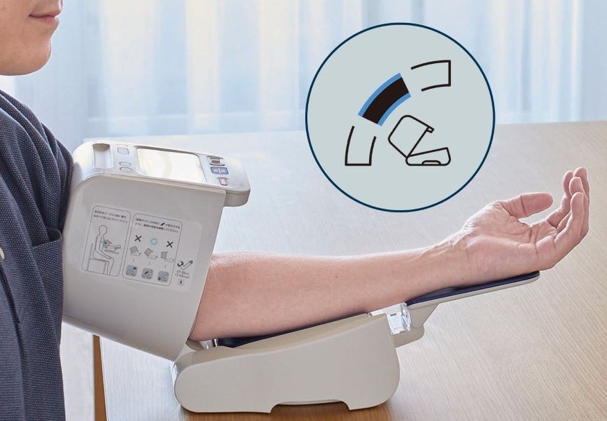 自動血圧計 スポットアーム 腕帯を開閉することで、電源が自動でON/OFFになります