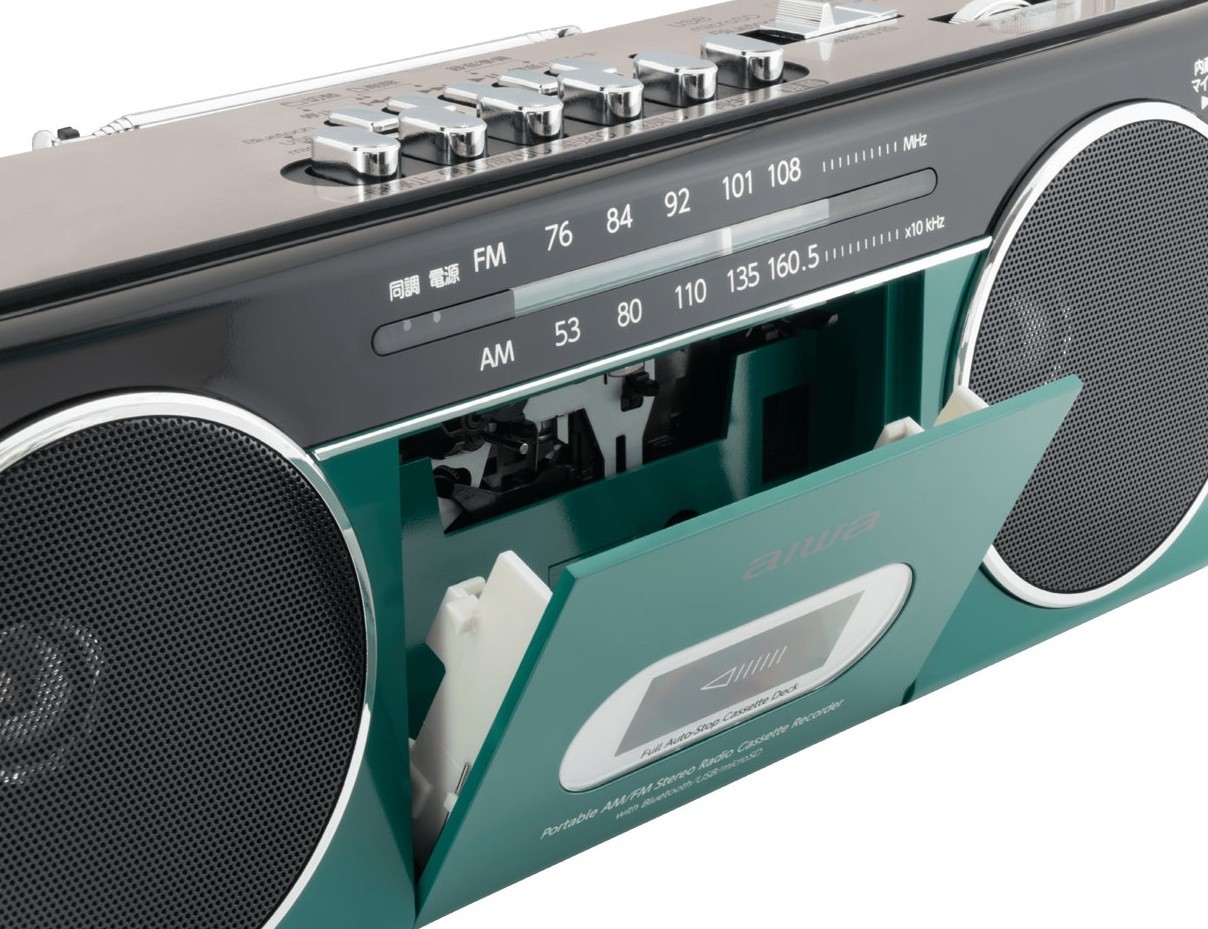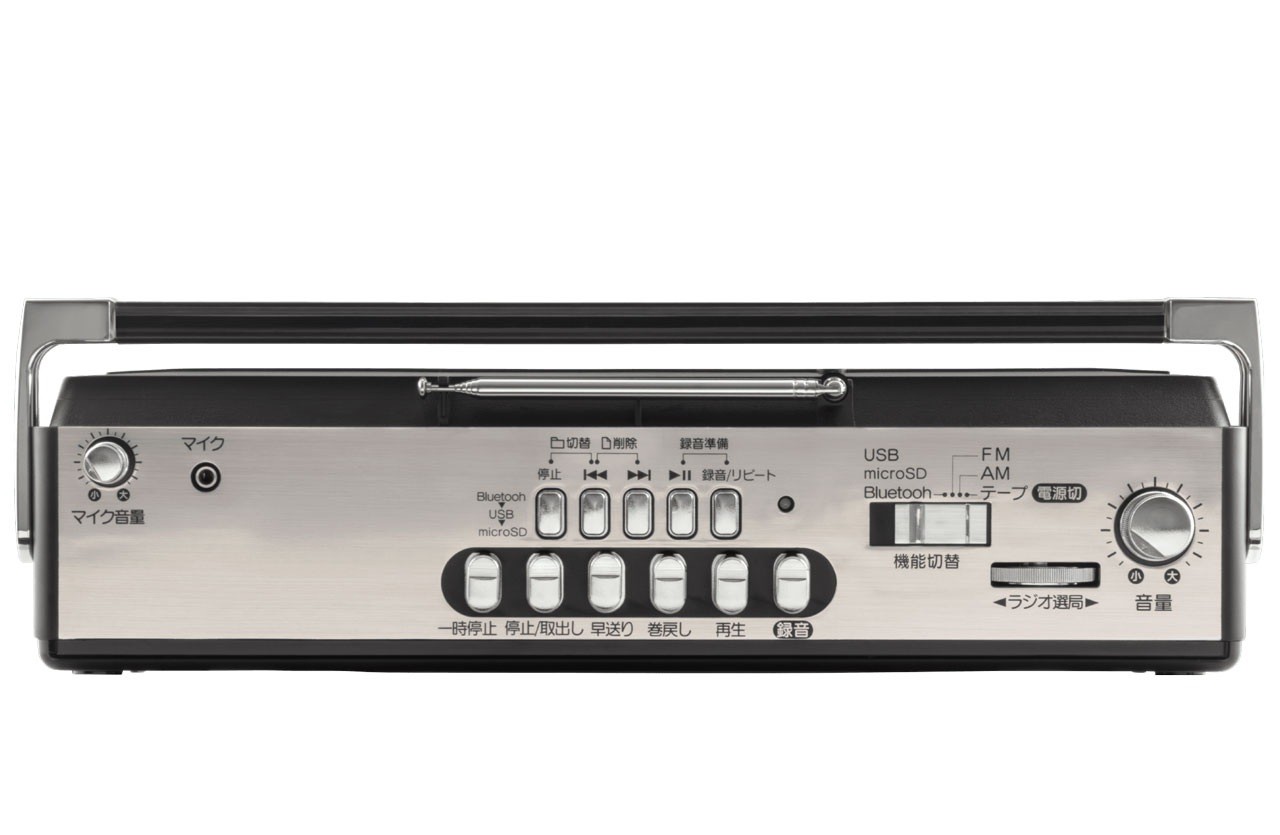 カセットテープの録音再生に加え、Bluetoothレシーバー機能やUSBメモリ・microSDカードの録音/再生機能も備えたファッショナブルラジカセ 乾電池でも動作するため災害時にも便利